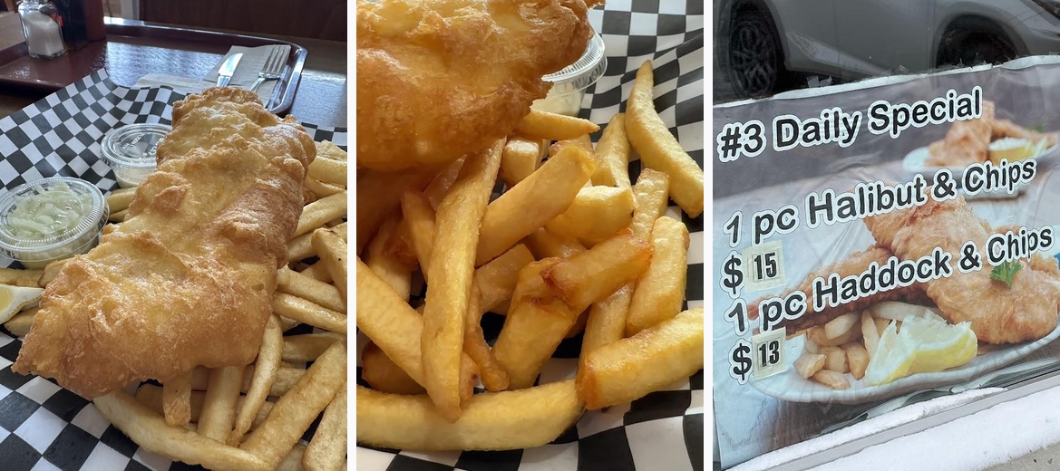 Delicious fish and chips ($13 at the moment) and chicken and chips ($15). Very cheap in comparison to others in town. They had generous portion sizes. 6 large chicken strips vs 4 small at the restaurant down the road. Very clean restaurant. I expected it to be bad, but it was actually very clean including the bathroom. Older restaurant, but he knows his stuff and maintains the place well. We will be back in the future as this just became our go to place.