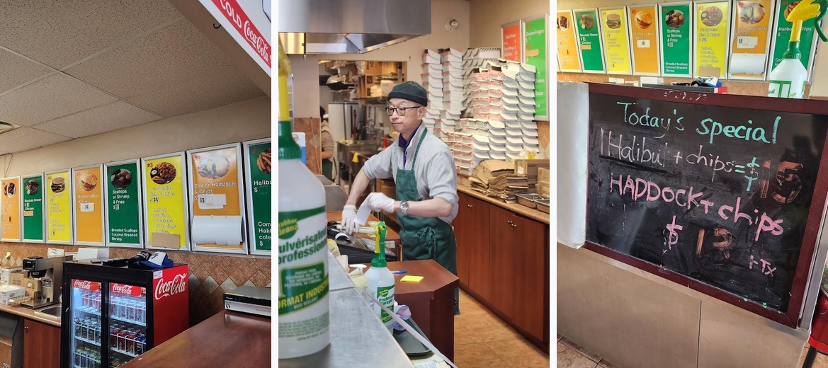 And old school looking institution but amazing flaky crispy fish. I was recommended by an employee where I work to come here. Portions were actually a good decent size and from what I was told, you can buy just the pieces of fish and then add fries on its own, but will have to try that out next time. I just really wanted a good spot to have some lunch. This definitely hit the spot. The fish tasted awesome and when you add the malt vinegar and some lemon to it, flavour and deliciousness is elevated. One thing I don’t do at fish and chips spots is ketchup. I just don’t think it’s needed and you just get that fried taste that much more Service was great. I believe it was the owner who pointed out the daily special which is what everyone gets. Got my food fairly quickly and when I went on a Wednesday lunch time, it wasn’t busy, but it was steady enough. Parking is very easy. A super large plaza and plenty of parking spots available for this section of the plaza. Great job overall